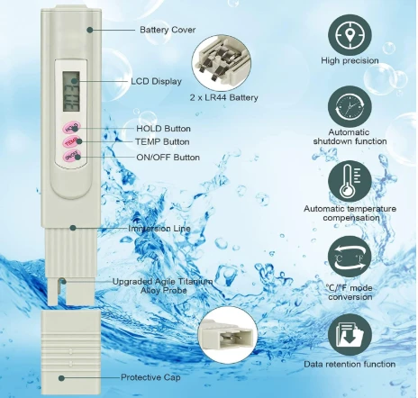 This device is perfect for ensuring safe and healthy water conditions in drinking water, reverse osmosis systems, aquariums, swimming pools, and hydroponics.